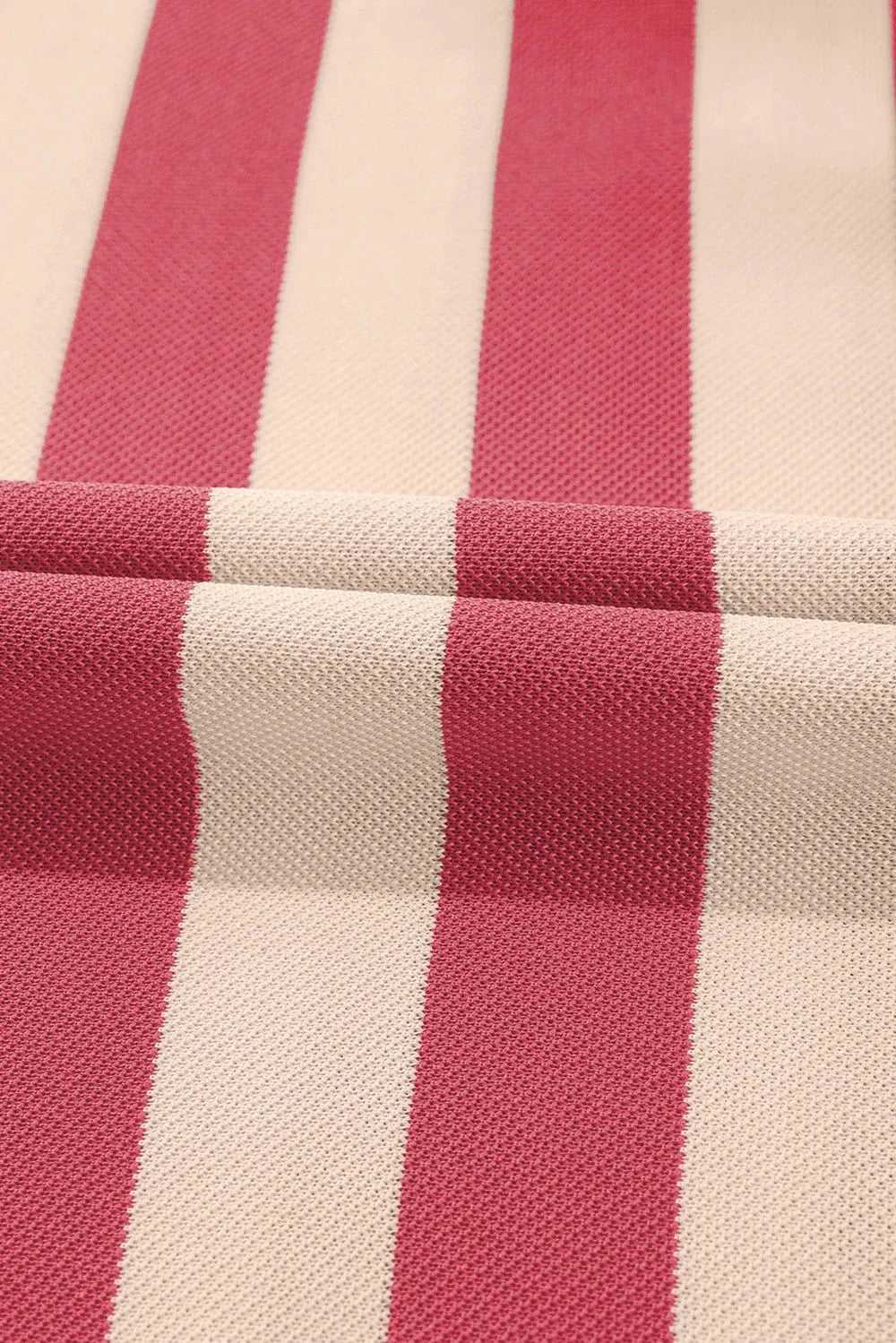 Robe courte à manches longues et col Johnny à rayures contrastées